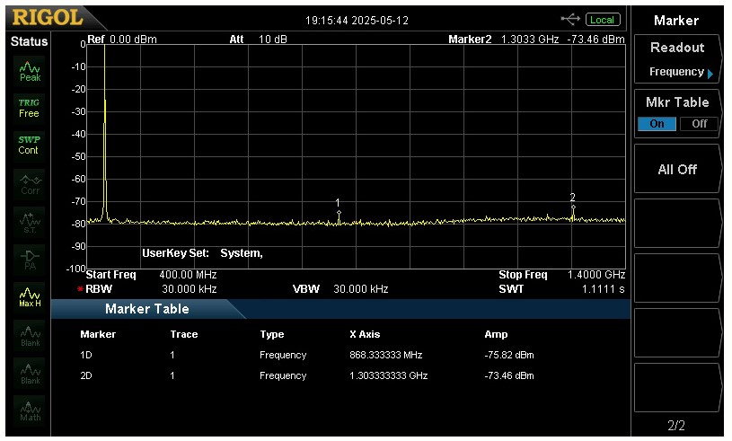 dieses Exemplar mit diesem Sendermodul (Ohne Filter zwischen Modul und Antennenanschluss):