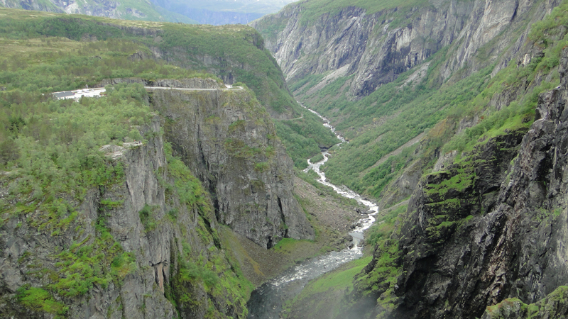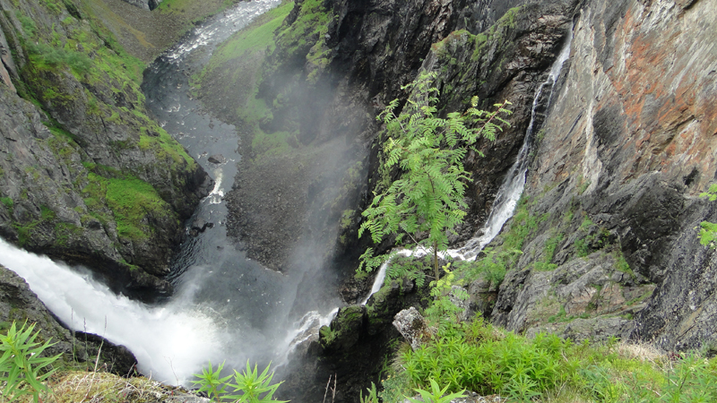 Wir fahren von Eidfjord durch die Hardangervidda mit einem Stop am Vøringfossen nach Geilo und weiter nach Gol, hier