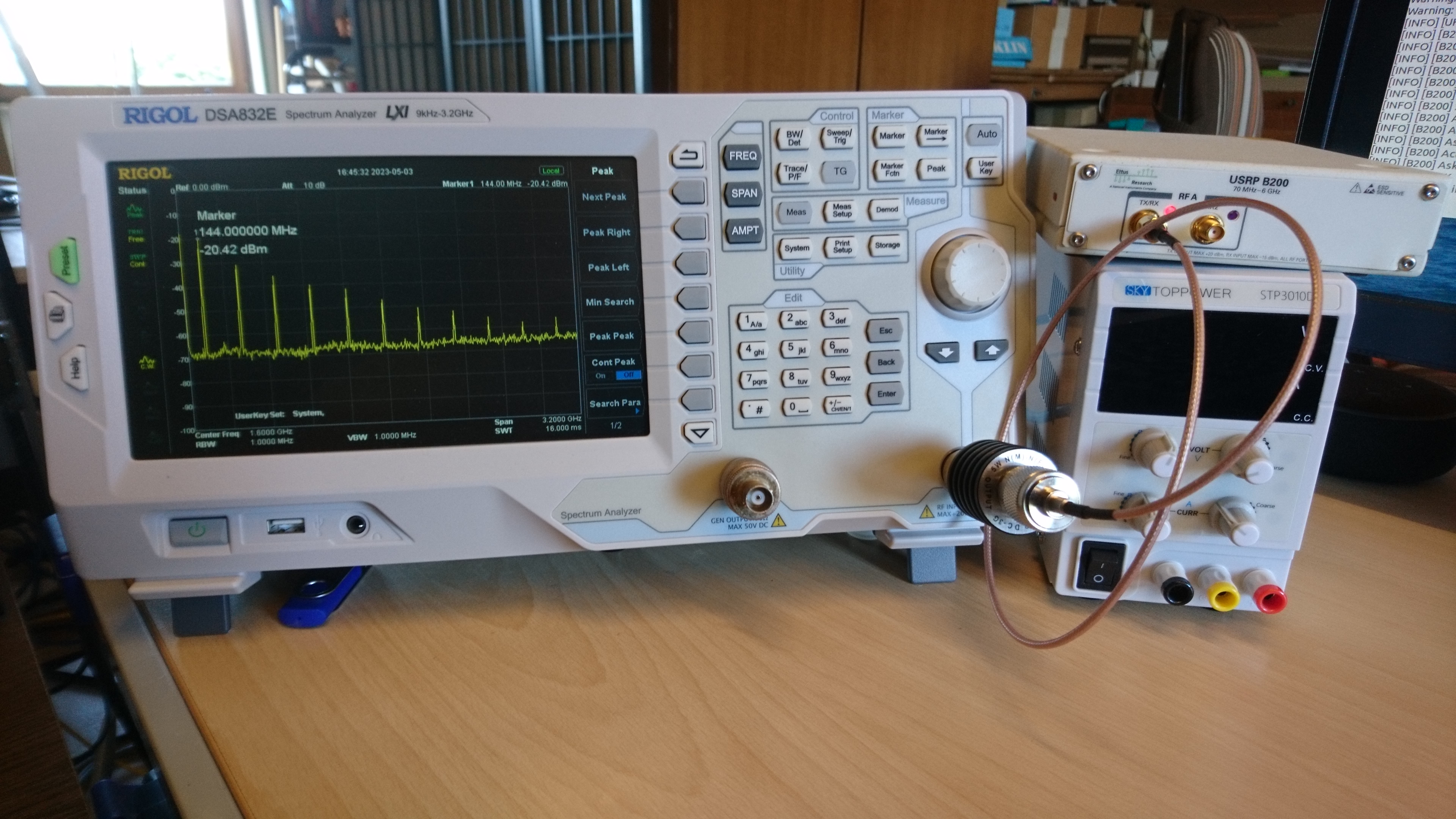 144 MHz, Gain 89 db, Output maximal (nicht mehr als bei 53 dB nur schlechter)