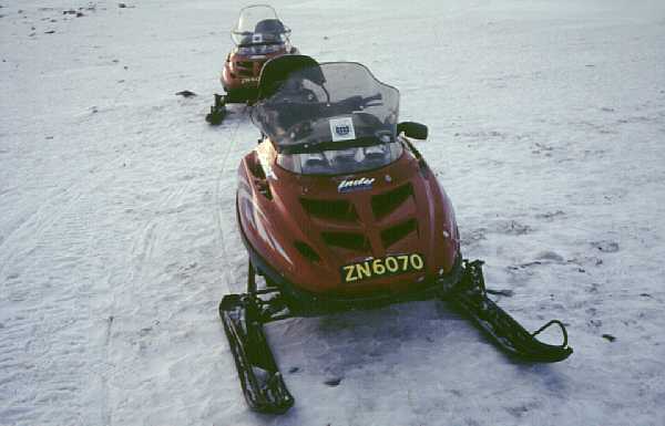 In Longyearbyen gibt es vermutlich mehr Motorschlitten (Snowscooter) als Autos. Während man mit dem Auto nur etwa 10 km auf der einen und etwa 5 km auf der anderen Seite aus dem Ort fahren kann und keine Möglichkeit hat einen der beiden anderen Orte zu erreichen ist der Aktionsbereich für Motorschlitten im Winter erheblich größer. Man kann über fast jede schneebedeckte Fläche fahren, wenn es sein muß auch über Eis. Zu beachten ist dabei aber dass Teile Spitzbergens aus Gründen des Naturschutzes gesperrt sind, Tiere möglichst wenig gestört weden und man auf keinen Fall Eisbären verfolgen darf. Die Verkehrsregeln, die auch in der Wildnis gelten (Tempolimit 80 km/h) entsprechen weitgehend denen für Autos, mit der Ausnahme dass praktisch alles was einem begegnet Vorfahrt hat.