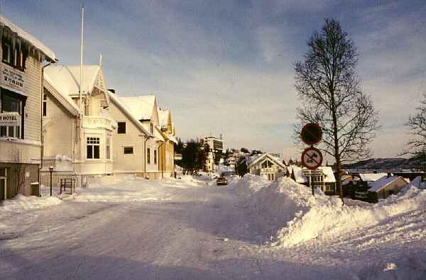 Hier warten wir dann noch etwa eine dreiviertel Stunde auf Laura, die aus Zürich ebenfalls über Oslo kommt. Nach der freudigen Begrüßung, unsere Vierergruppe ist nun komplett, fahren wir mit einem Taxi durch Tromsø zum AMI-Hotel in der Skolegata, unserem Ziel für heute. In Tromsø ist noch richtiger Winter! Es liegen Berge voll Schnee herum, Straßen und Wege sind schneebedeckt oder vereist, wenn es nicht gerade elektrisch beheizte Bürgersteige sind. Die Temperatur liegt so etwas unter Null Grad. Eigentlich gar nicht so kalt, wenn man bedenkt dass wir schon deutlich nördlich des Polarkreises sind.