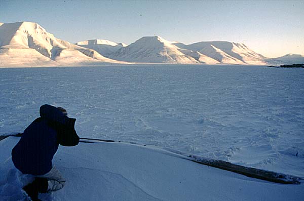 Der zugefrorene Adventfjord reizt Laura und mich zu vielen Fotos