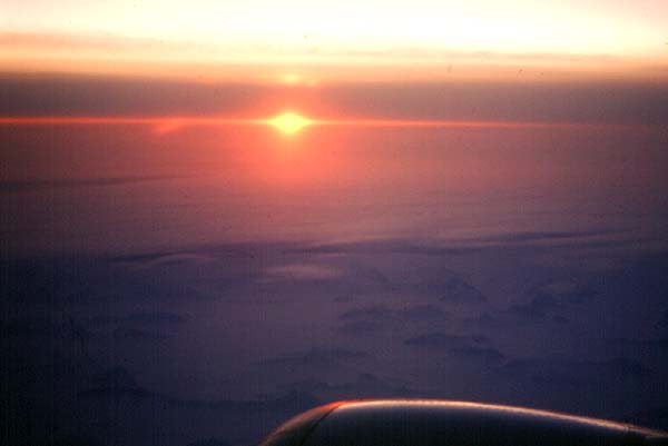 Sonnenaufgang für uns während des Flugs nach Tromsø