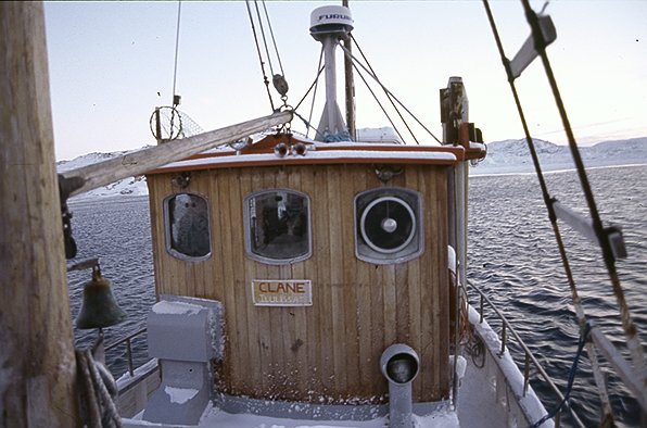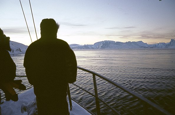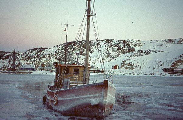 gar nicht richtig hell. Im Hafen ist viel loses Eis aber das Boot schafft es fast mühelos sich seinen Weg durch die