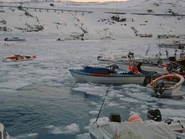 Vermutlich sind es so etwa -18°C. Nochmal laufen wir zum Hafen und schauen den Fischern interessiert zu.