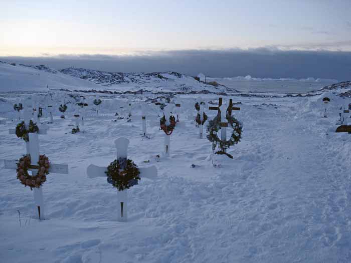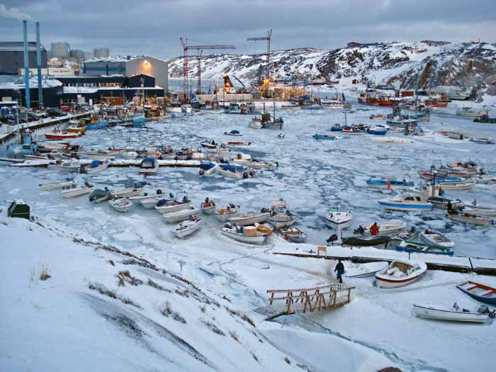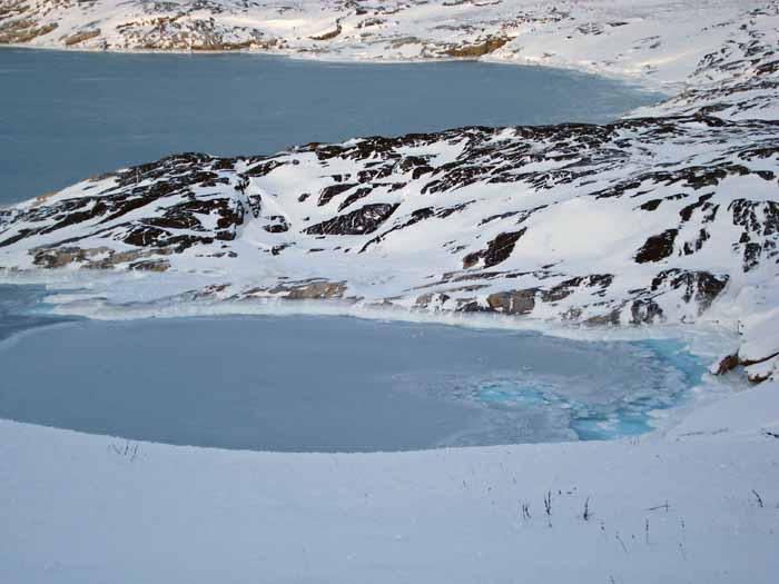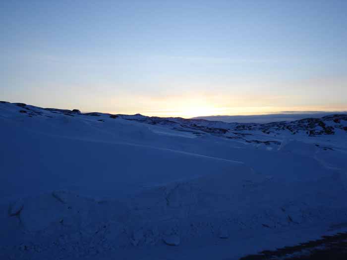 bei 69°13.137'N und 51°5.683'W. Das Ende der Polarnacht ist erst ein paar wenige Tage her.