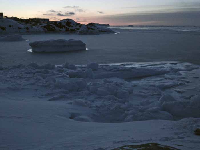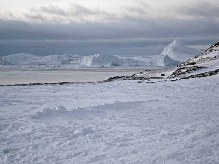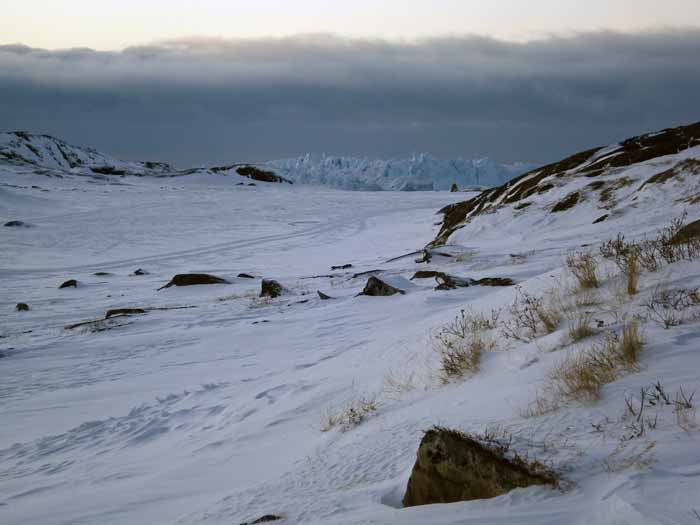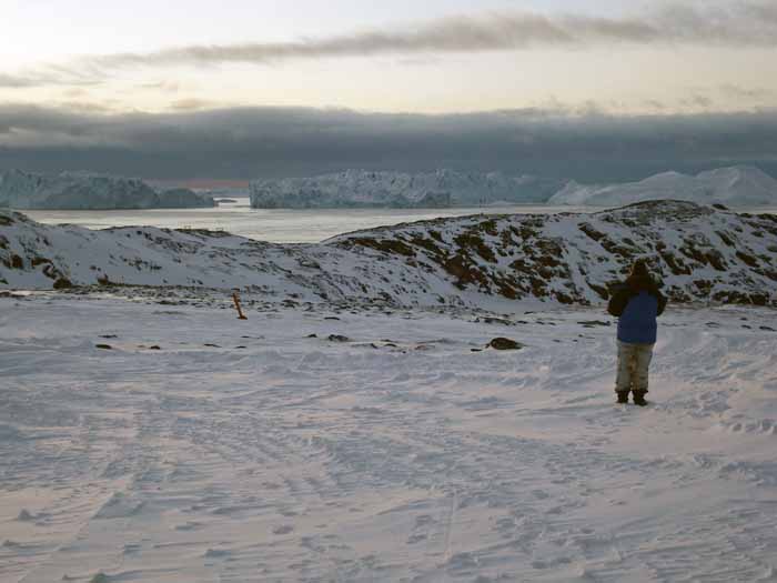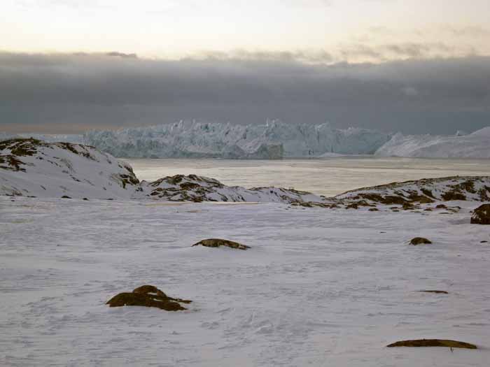 Ausblick auf die Eisberge aus dem Eisfjord "Kangia" haben. Der Blick ist einfach sensationell. Die tiefstehende Sonne