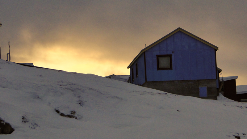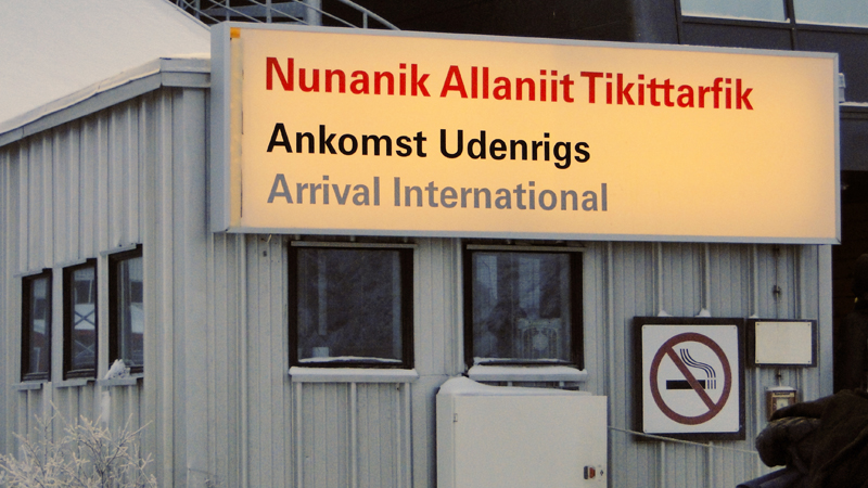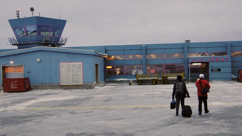 In Kangerlussuaq kommt dann eine der schnellsten Umsteigeaktionen, die ich je auf einem Flughafen erlebt habe: Zur einen Tür in das Gebäude