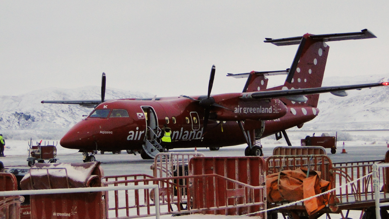 rein und direkt zur anderen wieder raus. Es geht weiter mit einer Turboprop De Havilland Dash 8 der Air Greenland