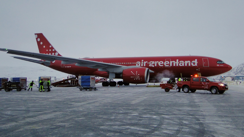 Heute fliegen wir nach Grönland! Um 8:50 starten wir mit einem Airbus 330 neo der Air Greenland nach Kangerlussuaq.