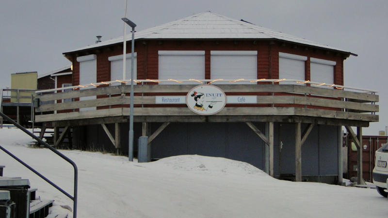 Winterkleidung gehen wir zum Abendessen in das Best Western Hotel. Es gibt Steak vom Moschusochsen. Moschusochsen haben übrigens nichts mit