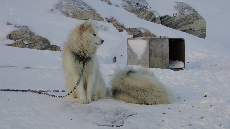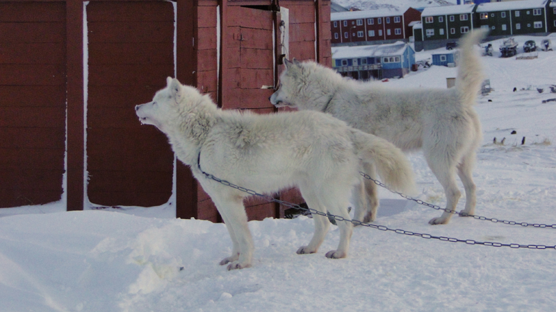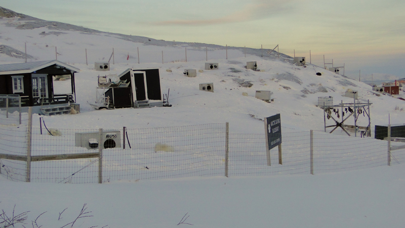 uns die Schlittenhunde, die es hier in großer Zahl gibt und ihre Heulkonzerte veranstalten. Die Hunde sind das ganze Jahr über draußen,