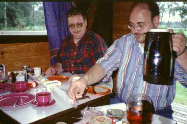 Wir fahren etwas erleichtert zurück auf den Campingplatz "Ritzebüttel". Dort treffen wir, wie erwartet, Brigitte und Werner. Sie sind mit einem Toyota Celica unterwegs, der noch vier Jahre älter ist als mein Bus. Sie haben ein Zelt dabei, wollen aber in Norwegen wenn möglich Hütten mieten. Heute wohnen sie im Zelt.