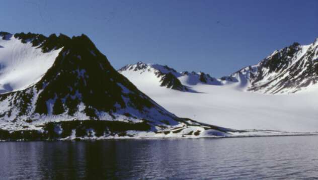 Dann geht es zurück und hinein in den Smeerenburgfjord. Ein Waalroß liegt faul auf einer Eisscholle und wälzt sich in der Sonne. Im Fjord stellt der Kapitän das Schiff ab. Es wird ganz ruhig um uns herum. Wir stehen auf Deck und suchen die Gegend ab. Kein Eisbär weit und breit. Mit dem Fernglas entdecke ich, trotz intensiver Suche, nicht die geringste Spur einer menschlichen Aktivität. Nichts! Es gibt Felsen, Eis, Schnee. Man fühlt sich wie auf einem anderen Planeten, auf dem es viel Wasser in jeder Form gibt, der ansonsten aber unbewohnt ist. Wieweit mag das nächste Schiff, die nächste Ansiedlung der nächste Mensch außerhalb dieses Schiffs von uns entfernt sein? Es ist einfach faszinierend. Man kann sich nur schwer losreißen um zum Abendessen zu gehen.