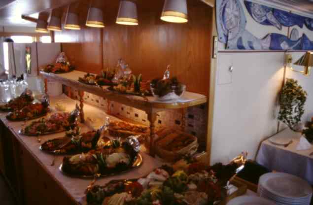 es bis in den Speisesaal. Es ist nur ein kleines Buffet aufgebaut, es ist