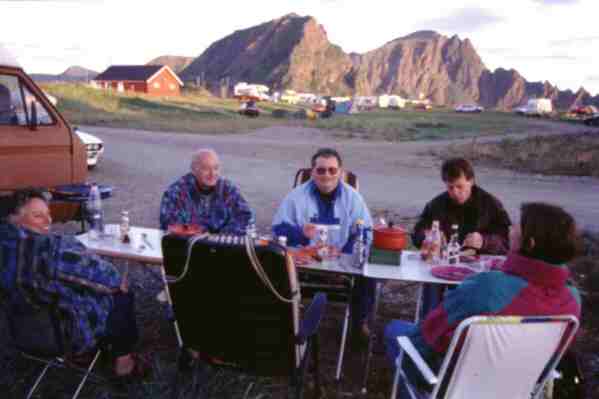 Der Campingplatz in Andenes (69° 18,295' N, 16° 4,072' E) ist sehr schön am Meer gelegen. Bei diesem Superwetter begeistert natürlich auch die Mitternachtssonne. Spät am Abend, so gegen "Mitternacht" landen noch ein paar Steaks auf dem Grill. Es ist inzwischen recht kühl geworden.