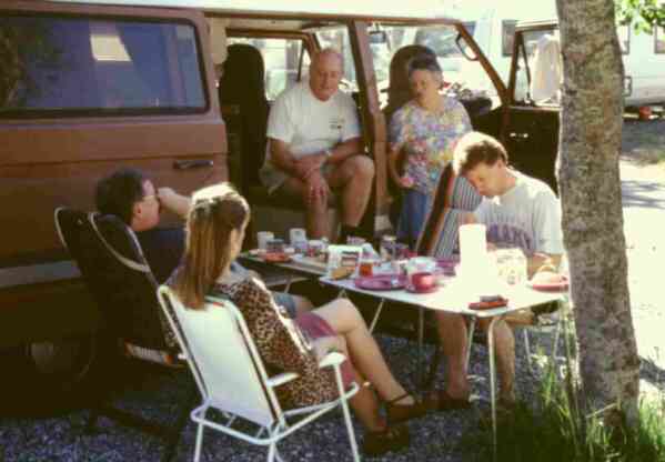Bei strömendem Regen wird unter dem Vordach meines VW-Busses die
