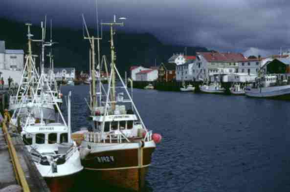 Wir fahren nach Henningsvær und machen eine Ortsbesichtigung. Der Hafen ist wie immer besonders interessant. Viele Bote sind zu sehen, unter anderem auch zwei Walfangboote. Nachdem wir uns ausgiebig umgeschaut haben, fahren wir weiter nach Nusfjord. Sehr sehenswert! Es gibt viele "Rørbuer", Holzhütten, die auf Pfählen über dem Wasser gebaut sind. Mittendrin ist ein Felsen, auf dem unzählige Möven nisten und um die Wette schreien. Es ist irre laut!