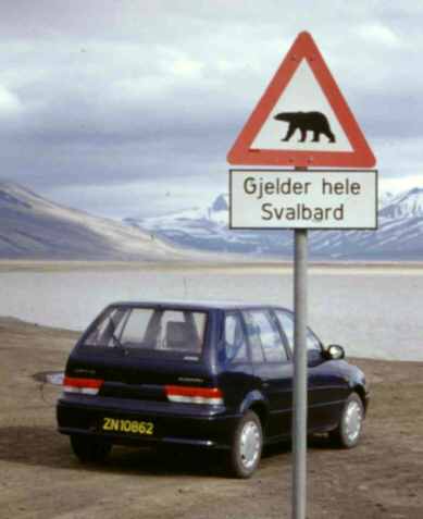 Zuerst sieht man hier wieder ein Schild, das vor der Eisbärengefahr
