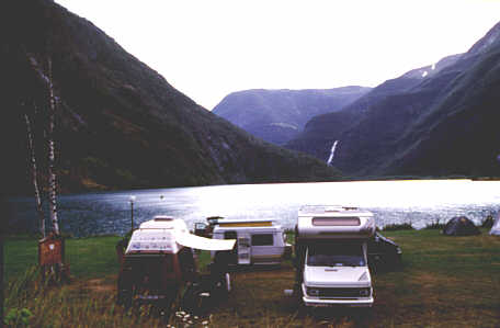 Von Lom aus fahren wir weiter auf der Straße Nr. 15 nach Bismo. Der Campingplatz "Bispen" ist recht gemütlich. Es gibt viele Bäume und eine gepflegte Waschhütte.