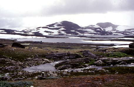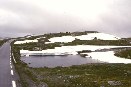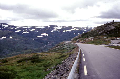Wir fahren auf der Straße Nr. 55 durch das Sognefjell nach Lom. Das Wetter ist nich ganz so wie es sich der Tourist wünscht, es ist etwas windig und kalt, aber das Fjell ist großartig. In diesem Jahr gibt es allerfings nicht allzuviel Schnee.