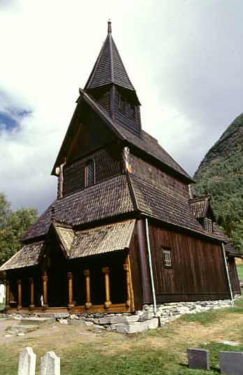 Wir beschließen uns die Gegend näher anzuschauen und noch eine weitere Nacht auf dem Platz in Skjolden zu verbringen. Mit Franks Auto fahren wir alle zusammen auf einer kleinen Nebenstraße auf der Südseite des Fjords zum Feigumfossen. Dieser Wasserfall regt zum wandern (den einen mehr, den anderen weniger) und fotografieren an. Nachdem wir uns ausgiebig mit ihm beschäftigt haben fahren wir weiter bis zum Ende dieser Straße nach Urnes. Zeitweise scheint sogar die Sonne, ein ganz seltenes Erlebnis in diesen Tagen. In Urnes befindet sich die wahrscheinlich älteste Stabkirche Norwegens. Sie wurde im 12. Jahrhundert erbaut und ist sehr gut erhalten. Auch wenn man eigentlich kein Fan alter Kirchen ist lohnt sich der Besuch. Außerdem gibt es gleich nebenan guten Kuchen und schöne Himbeeren für den Nachtisch heute abend.