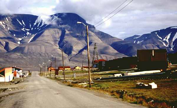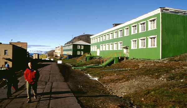 durch den Ort. In Barentsburg werden ein Teil der Lebensmittel, trotz der