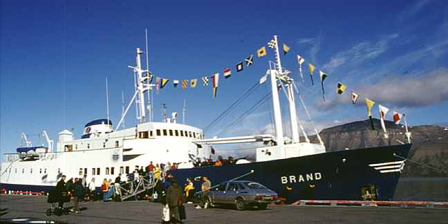 zum Kai. Hier wartet die "M/S Brand" auf uns. Das Schiff kennen wir schon