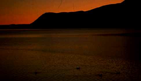 So gegen 23:00 Uhr ziehen wir wieder zum mitternächtlichen Fotografieren los. Zuerst in den Ort, dann raus zum Flughafen und Campingplatz. Es ist wieder ganz rotes Licht. Wir fahren ein Stück die Straße zum Plateaufjellet hinauf. Als wir anhalten stinkt das Auto ganz furchtbar nach verbranntem Öl und qualmt aus der Motorhaube. Wir trauen der Sache nicht so recht. So beschließen wir lieber wieder runter und zurück zum Ort zu fahren. Am Kai sehen wir ein paar Schiffe, die wir uns noch schnell anschauen wollen. Eins davon ist die "Origo", ein schwedisches Schiff mit dem Expeditionen rund um Spitzbergen angeboten werden. Dann liegt da noch die "Stockholm", die wohl irgendwie auch zu der Origo gehört. Außerdem liegt hier die "Langøysund", mit der wir am Sonntag nach Pyramiden und zum Nordenskjøldbreen fahren werden. Dieses Schiff habe ich im letzten Dezember in Tromsø gesehen und damals hätte ich gerne gewusst, wo es hinfährt, nun weiss ich es.
