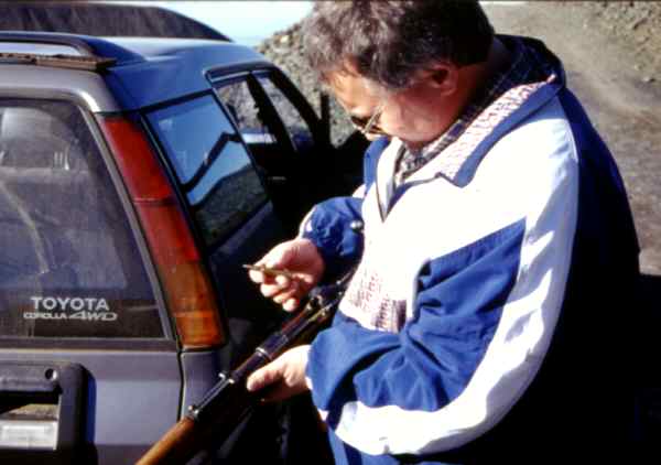 Vor jeder Wanderung wird sicherheitshalber das Gewehr geladen -