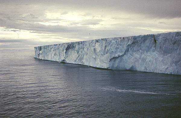Wir fahren mit der Polar Star weiter entlang der Küste von Nordaustlandet nach Südosten zum Bråsvellbreen (79° 14.617' N, 22° 56.178' E). Etwa drei Stunden fahren wir entlang der großartigen Gletscherfront und haben doch nur ein kleines Stück davon gesehen. Sie ist über 200 km lang. Der Bråsvellbreen ist Teil des Austfonna-Gletschers, der Nordaustlandet zum größten Teil bedeckt. Übarall schwimen im Wasser Eisbrocken, die vom Gletscher abgebrochen sind. Einige davon erinnern an Skulpturen moderner Kunst. Es gibt Farbvarianten, am meisten vertreten ist blaugrün, und interessante Muster und Maserungen. Auch ein weiteres Walross entdecken wir auf einer Eisscholle. Alle sind an Deck und können sich vom Anblick des Gletschers kaum lösen.