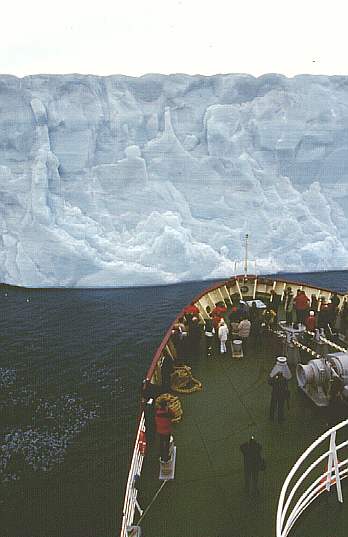 Meer sehen wir noch einen riesigen, blaugrünen Eisberg.