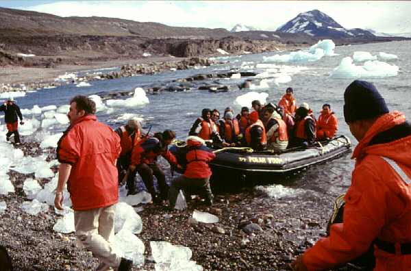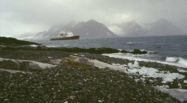 Nach dem Mittagessen landen wir mit den Booten in Treskelen an der Adriabukta (77° 1.284' N 16° 10.865' E). An unserem Landeplatz befindet sich eine Trapperhütte, die zur großen Überrachung (auch der unserer Guides) bewohnt ist. Wir wandern entlang der Küste bergauf und bergab. Leider verschlechtert sich das Wetter. Kalter Wind und etwas Regen versuchen uns den Spaß zu verderben, aber ohne Erfolg. Auch die Rückfahrt auf den Zodiacs zur Polar Star wird etwas feucht. Durch die Wellen und den Wind ist es schwierig die Boote anzulanden und so bleibt uns schon beim Einsteigen etwas Seewasser nicht erspart. Was noch trocken ist wird auf der Fahrt zur Polar Star noch etwas mit Salzwasser geduscht. Wassertemperatur Null Grad, Luft vier bis fünf Grad! Ein Bootsführer: "That is no holiday! That is expedition!!!". Es macht trotzdem, oder vielleicht gerade deshalb, einen Riesenspaß. Vielleicht sind es gerade auch diese Momente, die mich wieder hierher treiben. Aber irgendwie freue ich mich schon auf eine warme Dusche auf dem Schiff.