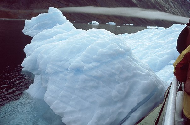 Gerade als das Ausbooten beginnt treibt ein Eisberg auf uns zu. Der