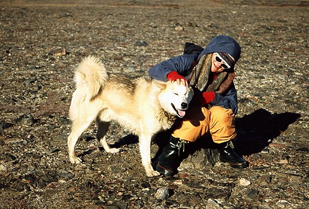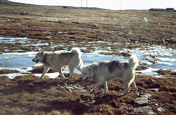 Wanderung, auf der uns die drei Huskies der Station begleiten,