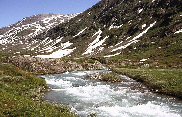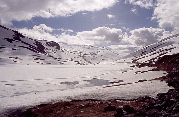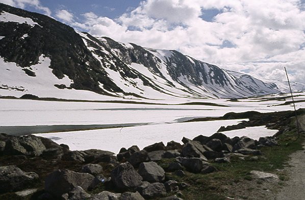 liegt noch viel Schnee und wir sehen auch noch einen weitgehend zugefrorenen See. Das Strynefjell ist auch