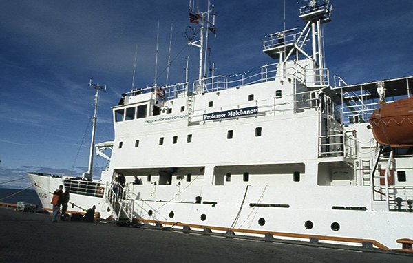 Gegen 16:00 finden wir uns bei unserem Schiff ein. Die "Professor Molchanov" soll uns rund um die Inselgruppe bringen