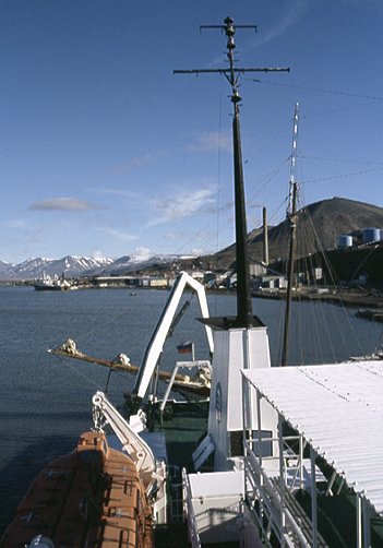 Etwa um 20:00 verlassen wir Longyearbyen. Durch den Adventfjorden geht es hinaus aufs Meer und dann in Richtung