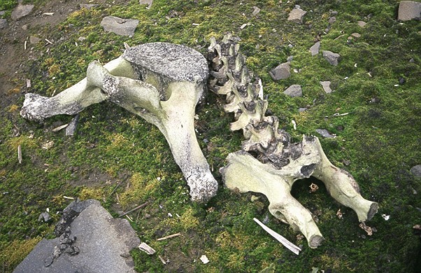 herumliegenden Knochen zusammengesetzt hat. Die Knochen stammen sicher noch aus der Walfängerzeit.
