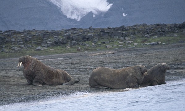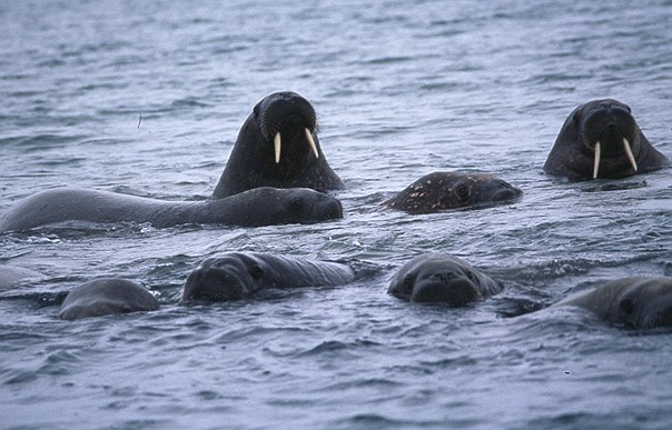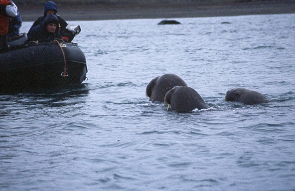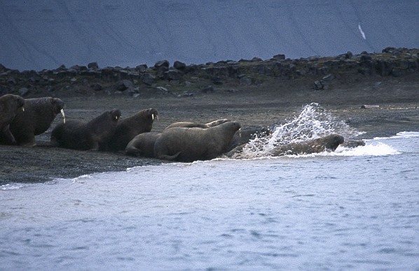 die Landung aus. Dafür können wir vor Delischøya (Waypoint 57) die Walrösser im Wasser beobachten.
