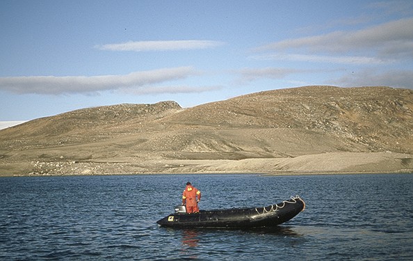 Das Schiff fährt wieder etwas nördlich im Duvefjorden. Wieder geht es in die Zodiacs, wir fahren in eine Bucht mit