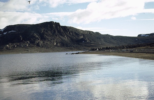 einer Lagune an der Westseite des Fjords (Waypoint 68) zwischen Minebukta und Reinsdyrvidda.