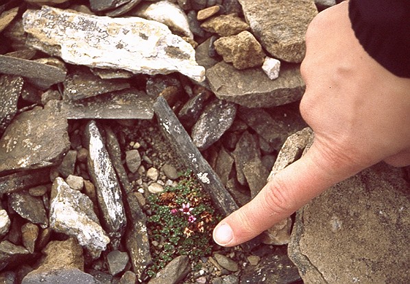 besonders geschützten Stellen wachsen kleine Pflanzen, sogar Blumen, maximal etwa 5 cm hoch. Am auffälligsten