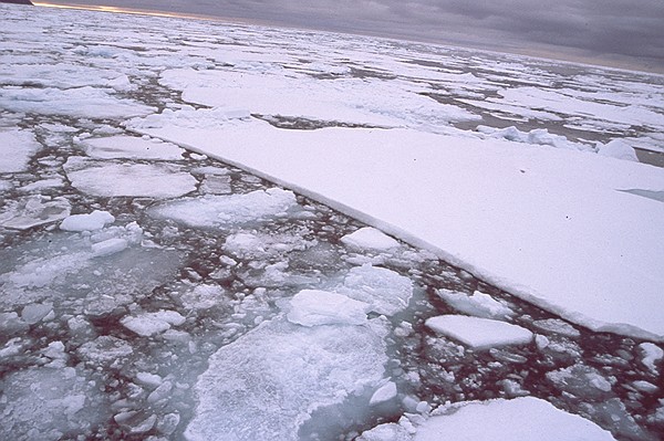 südwärts und wir fahren durch. Es ist keine geschlossene Eisfläche sondern es besteht aus einzelnen