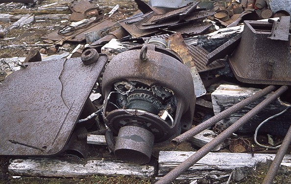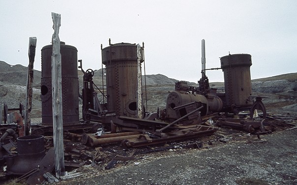 Direkt an der Landestelle befinden sich zwei Hütten und die Überreste alter Maschinen die vor etwa 80 Jahren zum