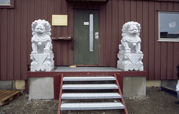 Alfred-Wegener-Institut ist hier vertreten. Der Eingang des chinesischen Instituts wird von zwei Löwen