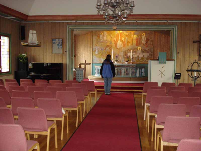 Dann besichtigen wir die Kirche, die wahrscheinlich nördlichste der Welt. Sie ist sehr gemütlich eingerichtet