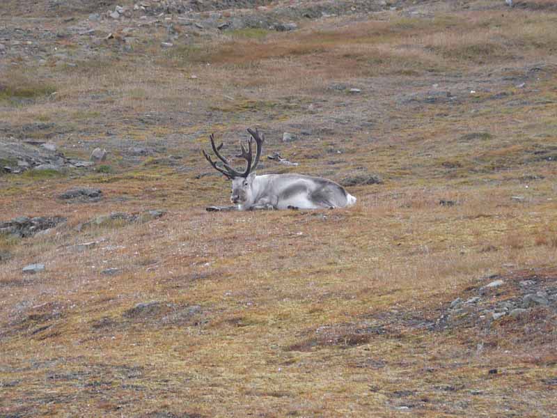 spektakulär. Wir beobachten übrigens vier Rentiere und zwei weitere Polarfüchse. Die Rentiere sind auf Spitzbergen
