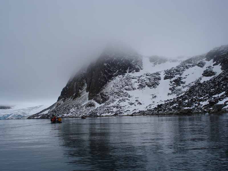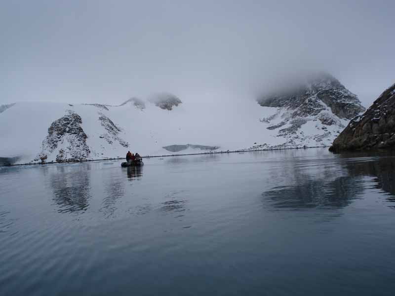 Hamiltonbukta (79°47.225'N, 11°51.325'E) machen wir eine ausgiebige Schlauchbootfahrt zum Hamiltonbreen.