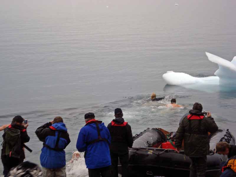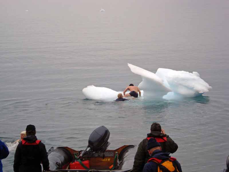 Warum auch nicht, das Wasser ist doch warm, jedenfalls ist es nicht gefroren und die paar Minieisberge